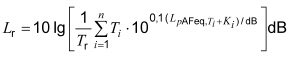 | Lr,Tag | Beurteilungspegel für den Beurteilungszeitraum Tag (6 Uhr bis 22 Uhr), in dB, |