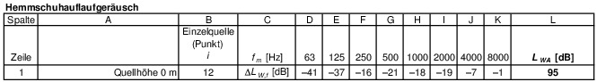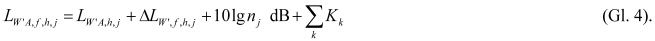 | LWA,ƒ,h,i | A-bewerteter Schallleistungspegel der Punktschallquelle i nach der Gleichung (Gl. 3), in dB, |