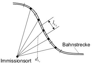 | d | Laufweglänge zwischen Quelle und Immissionsort, in m. |