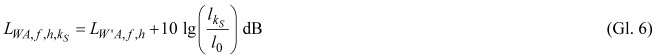 | LWA,f,h,kS | A-bewerteter Schallleistungspegel des Teilstücks kS nach der Gleichung (Gl. 6), in dB, |