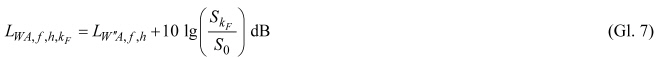 | LWA,f,h,kF | A-bewerteter Schallleistungspegel der Teilfläche kF nach der Gleichung (Gl. 7), in dB, |