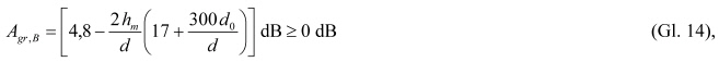 | Agr,B | Dämpfungsmaß durch Bodenabsorption über Boden nach (Gl. 14), |