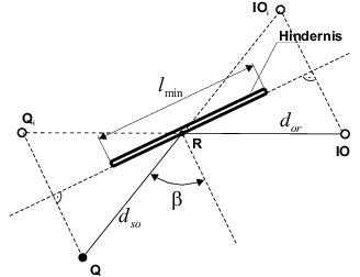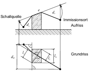 | ll | senkrechter Abstand zwischen Verbindungslinie Quelle – Empfänger und 1. Endpunkt des Hindernisses, in m, |