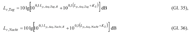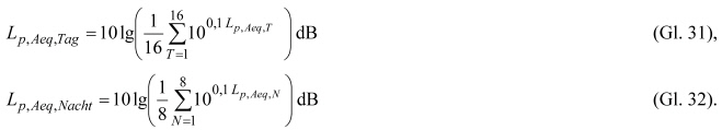2Die Berechnung hat getrennt für den Beurteilungszeitraum Tag (6 Uhr bis 22 Uhr) und den Beurteilungszeitraum Nacht (22 Uhr bis 6 Uhr) zu erfolgen.