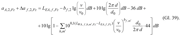| Aƒ,w | Ausbreitungsdämpfungsmaß im Oktavband ƒ längs des Weges w nach der Gleichung (Gl. 10), in dB. |