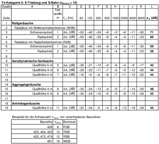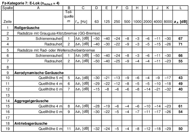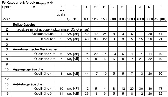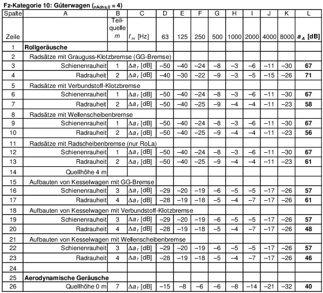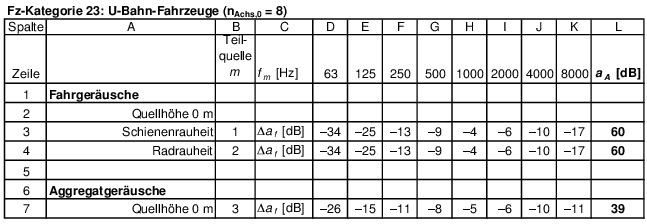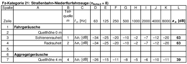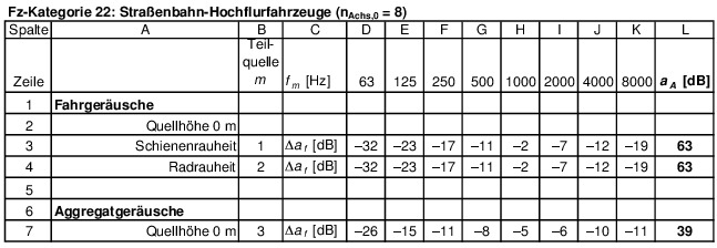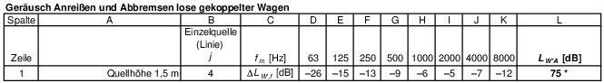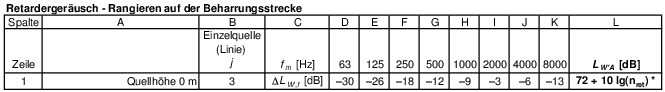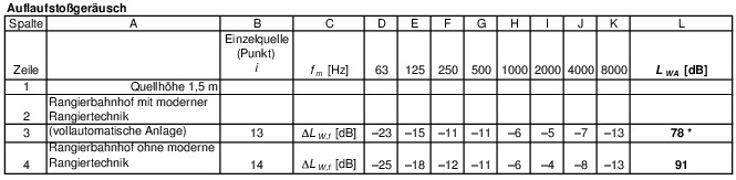 | KS = –5 dB | Pegelkorrektur Straße – Schiene im Sinne von Nummer 2.2.18 (gilt nicht für ein- und ausfahrende Züge und Rangierfahrten). |