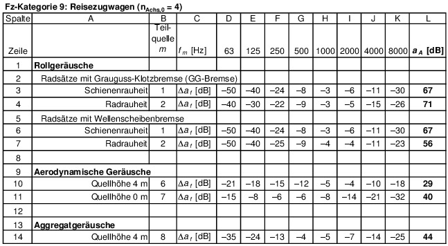| KS = –5 dB | Pegelkorrektur zur Berücksichtigung der geringeren Störwirkung des Schienenverkehrslärms gegenüber dem Straßenverkehr nach Nummer 2.2.18. |