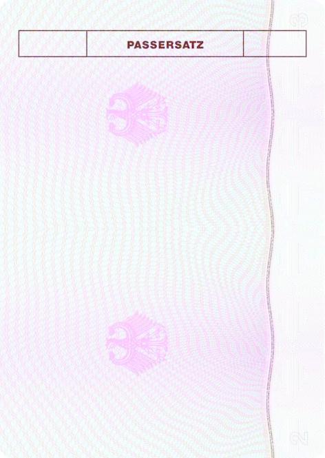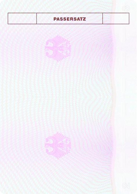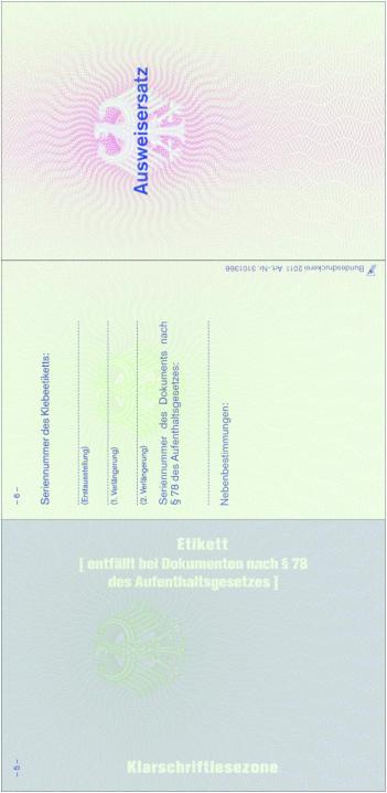 Auf Seite 5 ist eines der in den Anlagen D2a, D13b und D14 wiedergegebenen Klebeetiketten aufzukleben (entfällt bei Dokumenten nach § 78 des Aufenthaltsgesetzes).