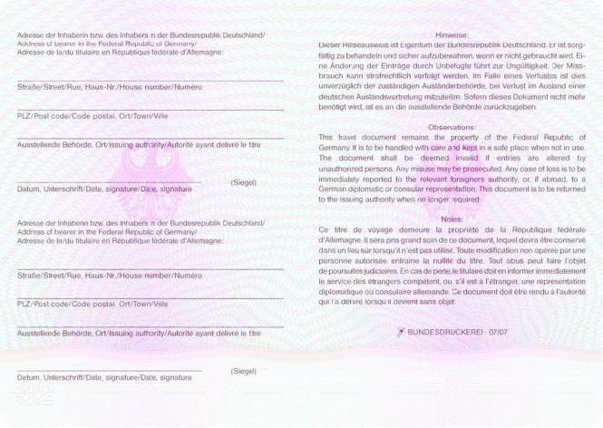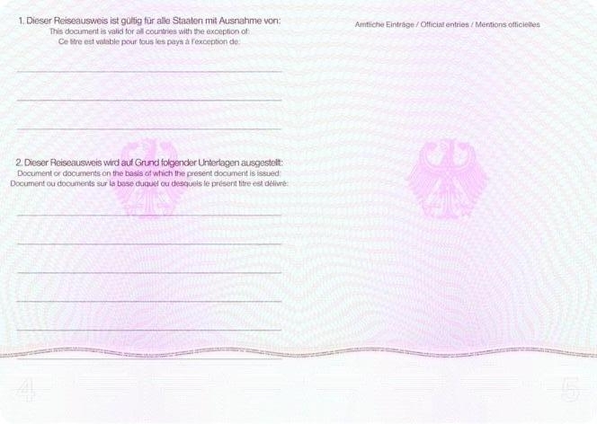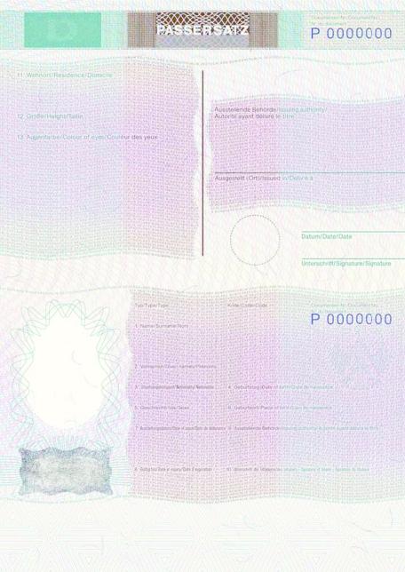 der auf den Seiten 2 und 3 des Reiseausweises aufgeklebt wird –
