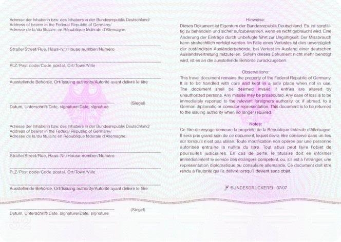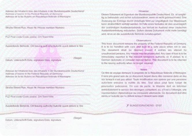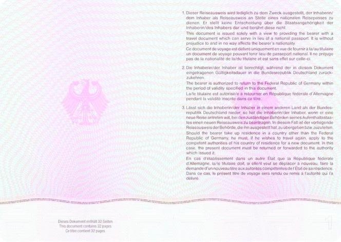 der auf den Seiten 2 und 3 des vorläufigen Reiseausweises aufgeklebt wird –