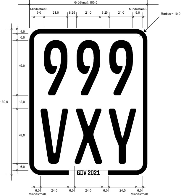 Schematische Darstellung mit Maßen der Beschriftung