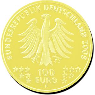 3Die Münze wird zu gleichen Teilen in den Münzstätten Berlin (Münzzeichen „A“), München (Münzzeichen „D“), Stuttgart (Münzzeichen „F“), Karlsruhe (Münzzeichen „G“) und Hamburg (Münzzeichen „J“) in Stempelglanzausführung geprägt.