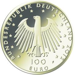 3Die Münze wird zu gleichen Teilen in den Münzstätten Berlin (Münzzeichen „A“), München (Münzzeichen „D“), Stuttgart (Münzzeichen „F“), Karlsruhe (Münzzeichen „G“) und Hamburg (Münzzeichen „J“) in Stempelglanzausführung geprägt.