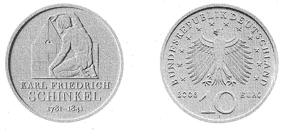1Gemäß den §§ 2, 4 und 5 des Münzgesetzes vom 16. Dezember 1999 (BGBl. I S. 2402) hat die Bundesregierung beschlossen, zur Würdigung des 225. Geburtstages von Karl Friedrich Schinkel eine deutsche Euro-Gedenkmünze im Nennwert von 10 Euro prägen zu lassen.