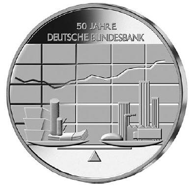 1Gemäß den §§ 2, 4 und 5 des Münzgesetzes vom 16. Dezember 1999 (BGBl. I S. 2402) hat die Bundesregierung beschlossen, aus Anlass des 50-jährigen Bestehens der Deutschen Bundesbank eine deutsche Euro-Gedenkmünze im Nennwert von 10 Euro prägen zu lassen.