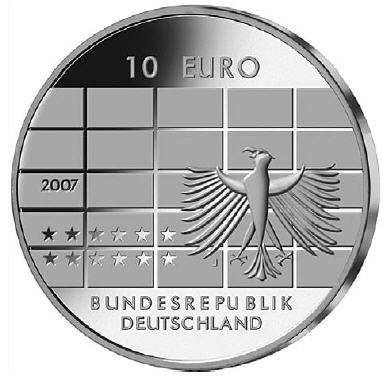 11Die Wertseite zeigt weiterhin den Schriftzug "BUNDESREPUBLIK DEUTSCHLAND", die Wertziffer und Wertbezeichnung, die Jahreszahl 2007 sowie das Prägezeichen "J" der Hamburgischen Münze.