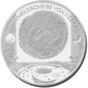 1Gemäß den §§ 2, 4 und 5 des Münzgesetzes vom 16. Dezember 1999 (BGBl. I S. 2402) hat die Bundesregierung beschlossen, aus Anlass der am 4. Juli 1999 im Ziegelrodauer Forst bei Nebra, Sachsen-Anhalt, gefundenen „Himmelsscheibe“, bei der es sich um einen Schlüsselfund für die europäische Vorgeschichte, die Astronomiegeschichte sowie die frühe Religionsgeschichte handelt, eine deutsche Euro-Gedenkmünze im Nennwert von 10 Euro prägen zu lassen.
