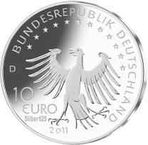12Die Wertseite zeigt eine mit der Bildseite harmonierende Adlerdarstellung, den Schriftzug „BUNDESREPUBLIK DEUTSCHLAND“, Wertziffer und Wertbezeichnung, das Prägezeichen „D“, die Jahreszahl 2011 sowie die zwölf Europasterne.