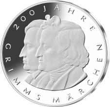 1Gemäß den §§ 2, 4 und 5 des Münzgesetzes vom 16. Dezember 1999 (BGBl. I S. 2402) hat die Bundesregierung beschlossen, zum Thema „200 Jahre Grimms Märchen“ eine deutsche Euro-Gedenkmünze im Nennwert von 10 Euro prägen zu lassen.