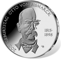 1Gemäß den §§ 2, 4 und 5 des Münzgesetzes vom 16. Dezember 1999 (BGBl. I S. 2402) hat die Bundesregierung beschlossen, zum Thema „200. Geburtstag Otto von Bismarck“ eine deutsche Euro-Gedenkmünze im Nennwert von 10 Euro prägen zu lassen.