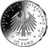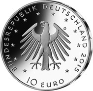 9Die Wertseite zeigt einen Adler, den Schriftzug „BUNDESREPUBLIK DEUTSCHLAND“, Wertziffer und Wertbezeichnung, das Prägezeichen „G“ der Staatlichen Münzen Baden-Württemberg, Prägestätte Karlsruhe, die Jahreszahl 2015 sowie die zwölf Europasterne.
