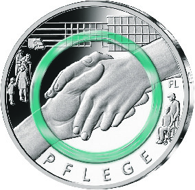 1Gemäß den §§ 2, 4 und 5 des Münzgesetzes vom 16. Dezember 1999 (BGBl. I S. 2402) hat die Bundesregierung beschlossen, eine 10-Euro-Sammlermünze „Pflege“ mit einem Kunststoffring in der Farbe Minttürkis prägen zu lassen.