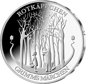 2Diese Münze ist die fünfte Ausgabe im Rahmen der 2012 begonnenen Serie „200 Jahre Grimms Märchen“.