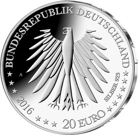 15Die Wertseite zeigt einen Adler, den Schriftzug „BUNDESREPUBLIK DEUTSCHLAND“, Wertziffer und Wertbezeichnung, das Prägezeichen „A“ der Staatlichen Münze Berlin, die Jahreszahl 2016, die zwölf Europasterne sowie die Angabe „SILBER 925“.