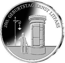 1Gemäß den §§ 2, 4 und 5 des Münzgesetzes vom 16. Dezember 1999 (BGBl. I S. 2402) hat die Bundesregierung beschlossen, eine deutsche Euro-Gedenkmünze „200. Geburtstag Ernst Litfaß“ im Nennwert von 20 Euro prägen zu lassen.