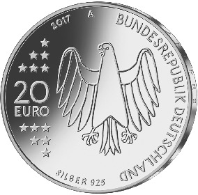 13Die Wertseite zeigt einen Adler, den Schriftzug „BUNDESREPUBLIK DEUTSCHLAND“, Wertziffer und Wertbezeichnung, das Prägezeichen „A“ der Staatlichen Münze Berlin, die Jahreszahl 2017 sowie die zwölf Europasterne.