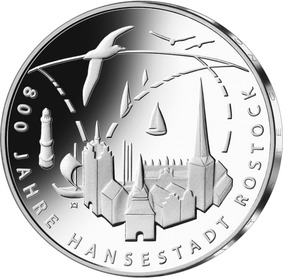 2Die Münze erinnert an die Stadtrechtsbestätigung für Rostock im Jahre 1218.