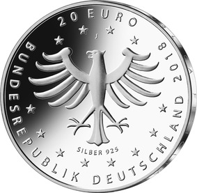 12Die Wertseite zeigt einen Adler, den Schriftzug „BUNDESREPUBLIK DEUTSCHLAND“, Wertziffer und Wertbezeichnung, das Prägezeichen „J“ der Hamburgischen Münze, die Jahreszahl 2018 sowie die zwölf Europasterne.