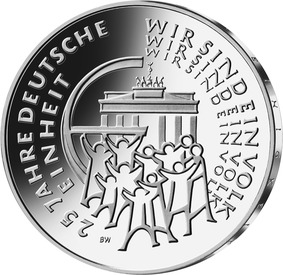 1Gemäß den §§ 2, 4 und 5 des Münzgesetzes vom 16. Dezember 1999 (BGBl. I S. 2402) hat die Bundesregierung beschlossen, zur Würdigung des 25. Jahrestages der deutschen Wiedervereinigung eine 25-Euro-Gedenkmünze „25 Jahre Deutsche Einheit“ prägen zu lassen.