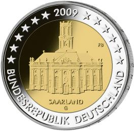 7Die nationale Seite zeigt die Ludwigskirche in Saarbrücken.