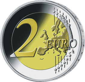 3Die Wertseite der Münze, die Randschrift (Schriftzug „EINIGKEIT UND RECHT UND FREIHEIT“ sowie eine stilisierte Darstellung des Bundesadlers) und die technischen Parameter entsprechen der 2-Euro-Umlaufmünze.