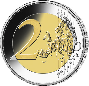 3Die Wertseite der Münze, die Randschrift (Schriftzug „EINIGKEIT UND RECHT UND FREIHEIT“ sowie eine stilisierte Darstellung des Bundesadlers) und die technischen Parameter entsprechen der 2-Euro-Umlaufmünze.