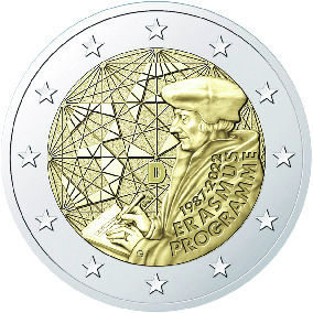 1Auf Initiative der Europäischen Kommission geben die Mitgliedsstaaten der Euro-Zone im zweiten Halbjahr 2022 zur Würdigung des 35-jährigen Bestehens des Erasmus-Programms eine motivgleiche 2-Euro-Gedenkmünze heraus.