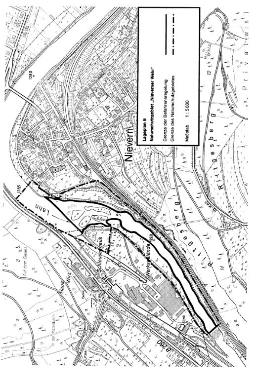 den Wehrarm von Lahn-km 128,55 bis Lahn-km 129,35 (Lageplan 6).