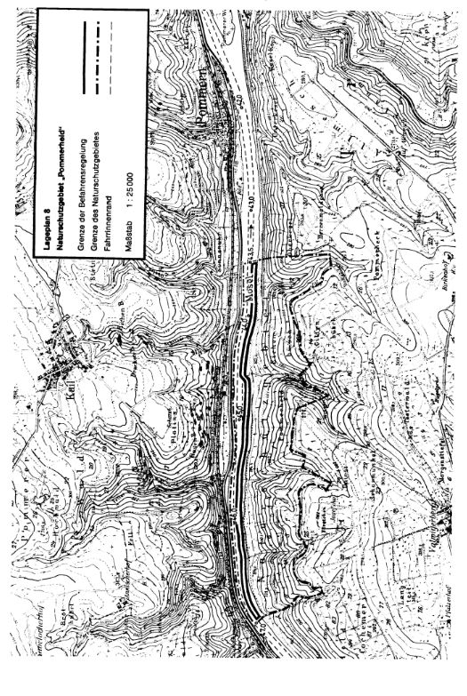 in der Zeit vom 15. Oktober bis zum 31. März die Wasserfläche in einer Breite von 40 m entlang dem rechten Moselufer von Mosel-km 43,50 bis Mosel-km 47,00 sowie zwischen dem Parallelwerk bei Mosel-km 45,00 und dem rechten Moselufer (Lageplan 8).