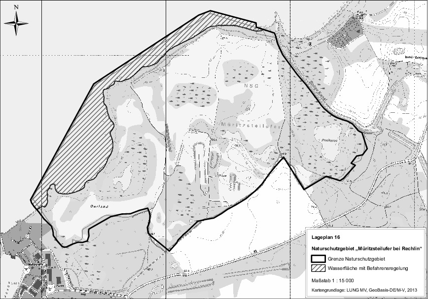 in der Müritz die gesamte Wasserfläche des Naturschutzgebietes „Müritzsteilufer bei Rechlin“ nach Maßgabe des Lageplans 16.