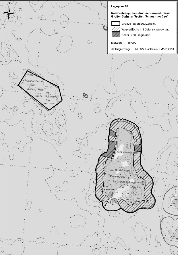 die Wasserfläche des Naturschutzgebietes „Kaninchenwerder und Großer Stein im Großen Schweriner See“ nach Maßgabe des Lageplans 18;