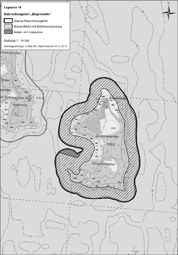 die Wasserfläche des Naturschutzgebietes „Ziegelwerder“ nach Maßgabe des Lageplans 19;