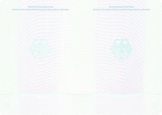 | Reisepass (32 Seiten) | Passbuchinnenseiten 8 und 9 |