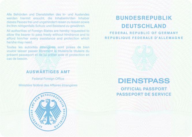(1) Der Dienstpass der Bundesrepublik Deutschland ist nach dem in der Anlage 4 abgedruckten Muster auszustellen.
