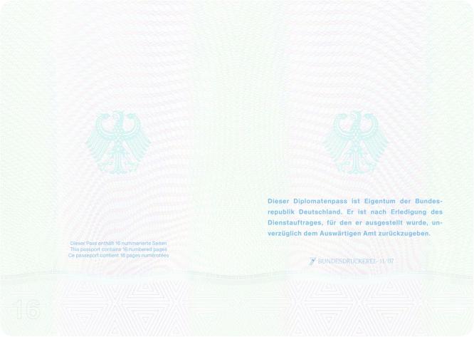 (4) Der vorläufige Diplomatenpass der Bundesrepublik Deutschland ist nach dem in der Anlage 7 abgedruckten Muster auszustellen.