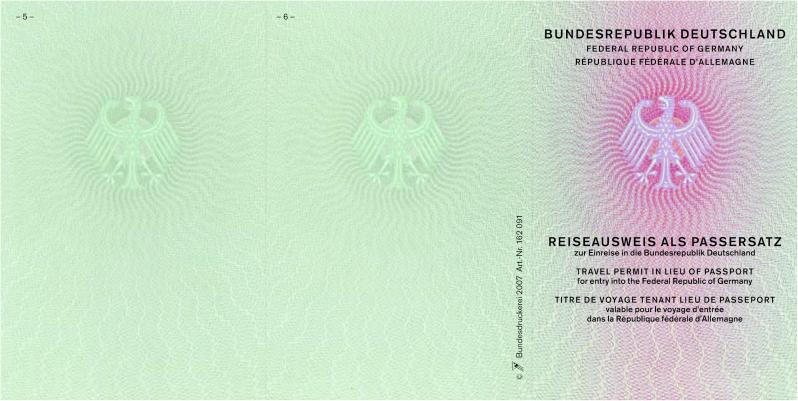 | Reiseausweis als Passersatz zur Einreise in die Bundesrepublik Deutschland |