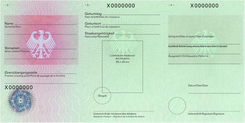 | Reisepass (32 Seiten) | Passbuchinnenseiten 2 und 3 |