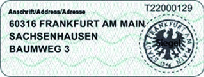 Muster des Aufklebers zur Anschriftenänderung des vorläufigen Personalausweises