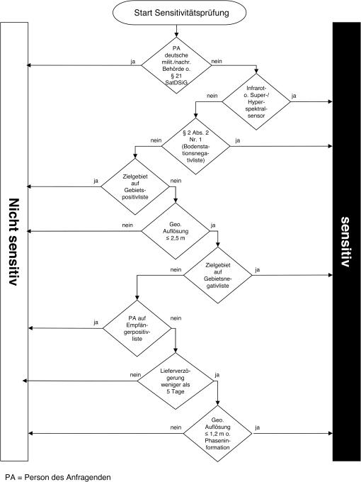 (1) Eine Anfrage der Bundesrepublik Deutschland nach § 21 des Satellitendatensicherheitsgesetzes oder einer deutschen militärischen oder nachrichtendienstlichen Behörde ist nicht sensitiv.