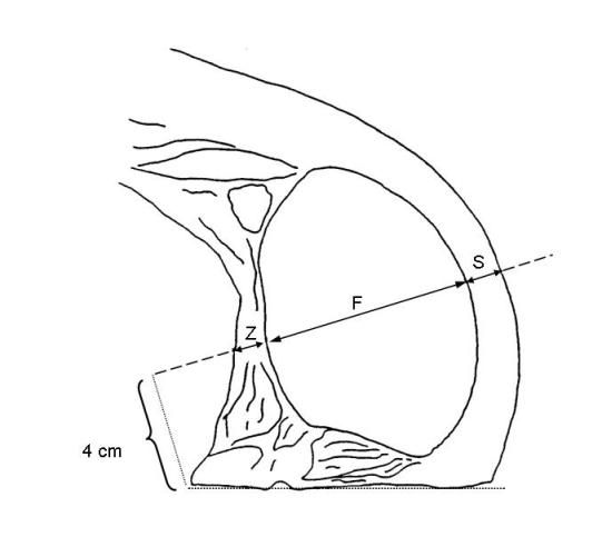 5Bei Klassifizierungsgeräten, die aufgrund der spezifischen biologischen Eigenschaften eines Schlachtkörpers die Dicke des Rückenmuskels nicht direkt bestimmen können, wird anstatt des Fleischmaßes F ersatzweise das Fleischmaß F* für die Berechnung des Muskelfleischanteils verwendet.